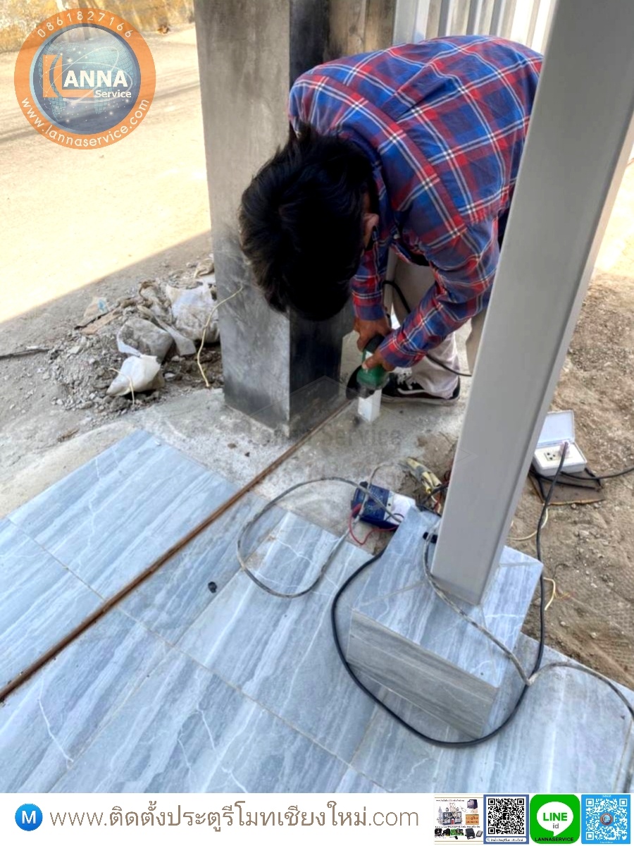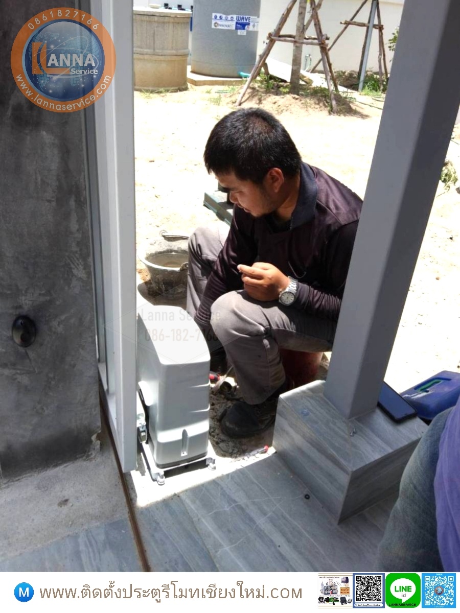 [ ใช้มอเตอร์ไฟฟ้าอัตโนมัติ*ควบคุม*ประตูรั้ว ]