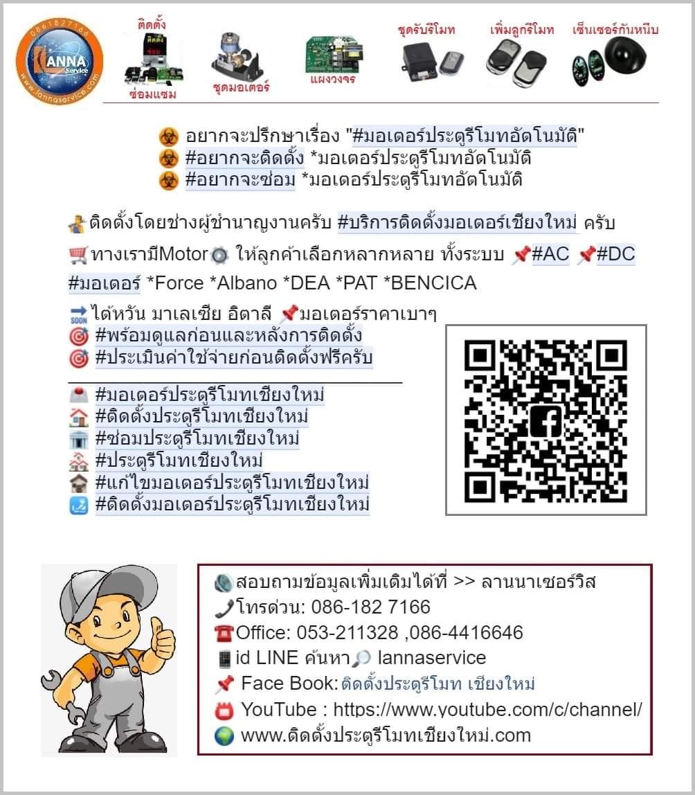 | Ⓜ️ #Lannaservice 📍 #งานซ่อมแซมมอเตอร์BSM ● มอเตอร์ไม่ทำงาน🤗ขอขอบคุณลูกค้า🏡 #บ้านเหมืองแก้ว@แม่ริม 💕 ที่ไว้วางใจทีมงานของเรา📍 https://youtu.be/T6c_b6_cvS8 #มอเตอร์เดิมลูกค้าไม่ได้ติดตั้งกับทางเรา"ลานนาเซอร์วิส" เรารับซ่อมแซมก่อน/พร้อมแก้ไข 🔺️ #รับประกันหลังซ่อมแซม 👉 #ติดตั้งอีกแห่งForce 👉 #ซ่อมแซมBSMอีก สถานที่ไม่ห่างกัน =============================== 🎉 *บริการงานมอเตอร์ประตูรีโมททุกยี่ห้อ ● #DEA ● #ROGER ● #FAAC ● #Centurion ● #Force ● #EnergyE8 ● #BSM ● #PAT● #CAME ● #Benneca ☆แบรนด์☆: ไต้หวัน /มาเลเซีย /ยุโรป/ อิตาลี/ แอฟริกา 🤗 ระบบ 📌#AC 📌#DC 🏠 #ติดตั้งประตูรีโมทเชียงใหม่ 🏛 #ซ่อมแซมแก้ไขประตูรีโมทเชียงใหม่ 🏘 #ศูนย์ซ่อมมอเตอร์ประตูรีโมท 🎯 #พร้อมดูแลก่อนและหลังการติดตั้ง 🎯 #ประเมินค่าใช้จ่ายก่อนติดตั้งฟรีครับ 🎯 #มีศูนย์ซ่อมและจำหน่ายอะไหล่ในเชียงใหม่รวดเร็วทันใจครับ =============================== || 📌สอบถาม/ปรึกษาได้ที่📌 Lannaservice || 📲 : 086-1827166 ||📱id LINE : lannaservice || ☎️ Office: 053-211328 , 086-4416636 || 🔴YouTube: https://www.youtube.com/c/lannaservice/ || 🌍 http://www.xn--72cai2bebbq8a2ddkib9j2cn5c2ad2f6htb5a1kg.com/ 📌 ผลงานที่ผ่านมา https://youtu.be/DoHU3_VQFb8 🎯 มีหน้าร้าน มั่นใจก่อนได้ครับผม 📌 My google map - https://goo.gl/maps/XkEmFTxfxMGx6izd9 |
