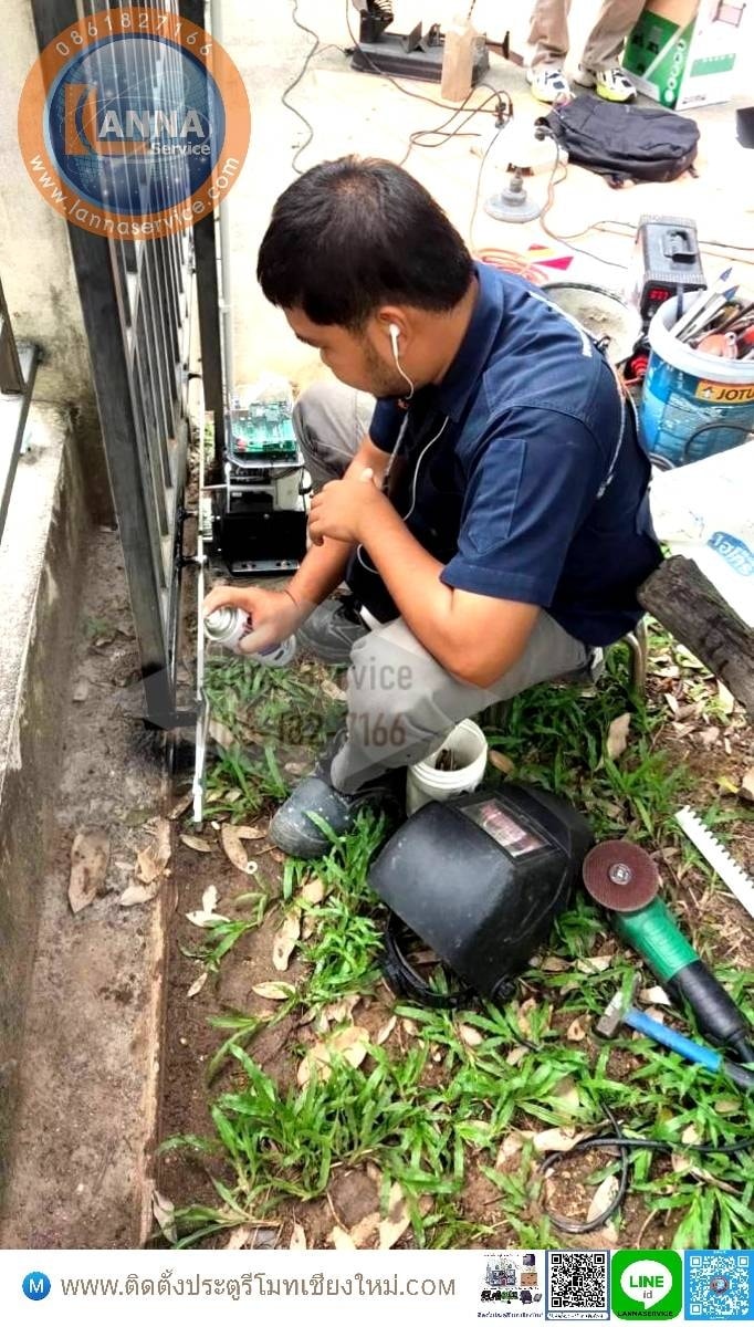 [ ใช้มอเตอร์ไฟฟ้าอัตโนมัติ*ควบคุม*ประตูรั้ว ]