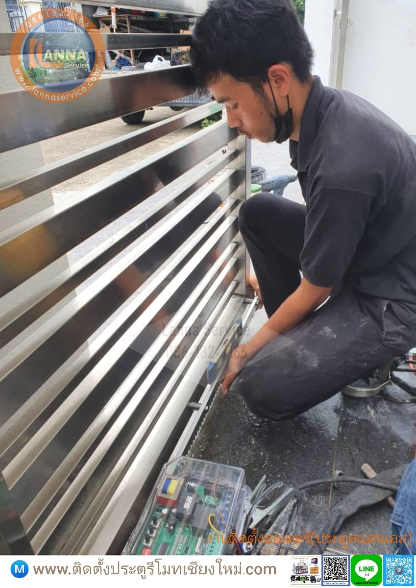 [ ใช้มอเตอร์ไฟฟ้าอัตโนมัติ*ควบคุม*ประตูรั้ว ]