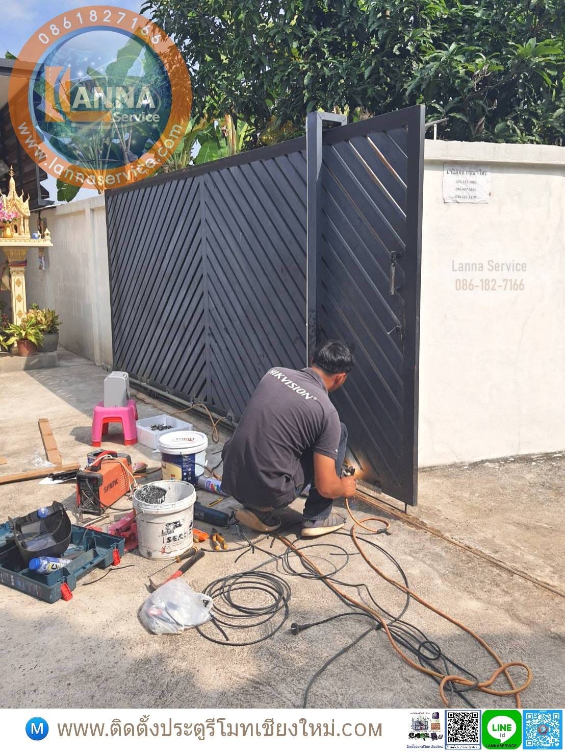 [ ใช้มอเตอร์ไฟฟ้าอัตโนมัติ*ควบคุม*ประตูรั้ว ]